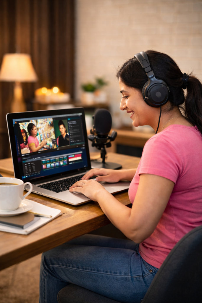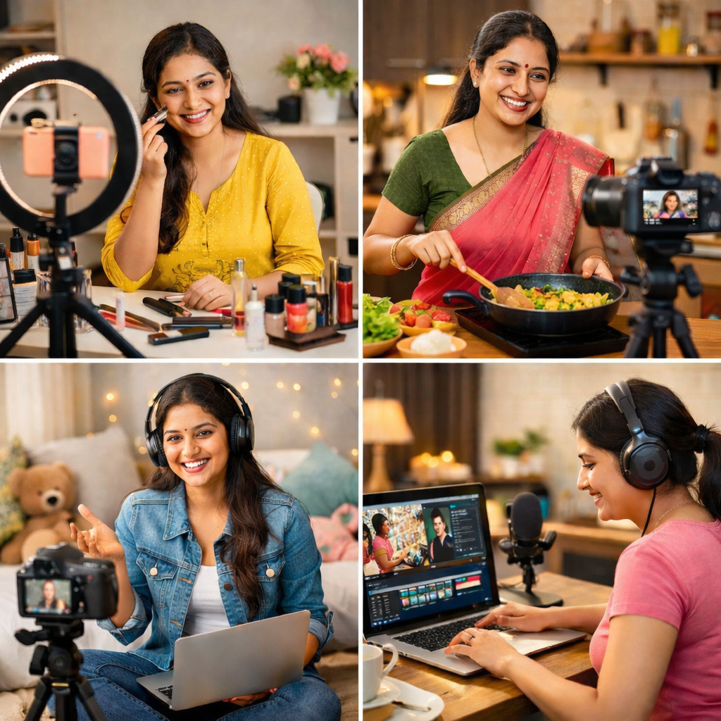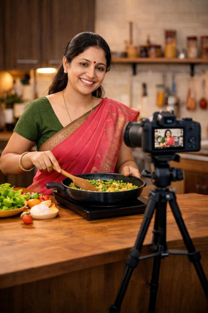 Women ke liye YouTube isliye bhi perfect hai kyunki wo ghar ke kaam ke saath-saath bhi videos bana sakti hain. Kitchen me recipe banate waqt, ready hote waqt makeup tutorial, bacchon ke saath routine vlog, ya raat ko thoda free time milne par video editing – sab kuch ghar se possible hai. Isse unka confidence bhi badhta hai aur financial independence bhi milti hai.